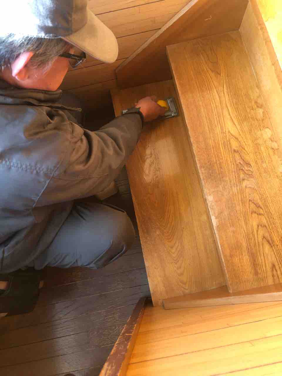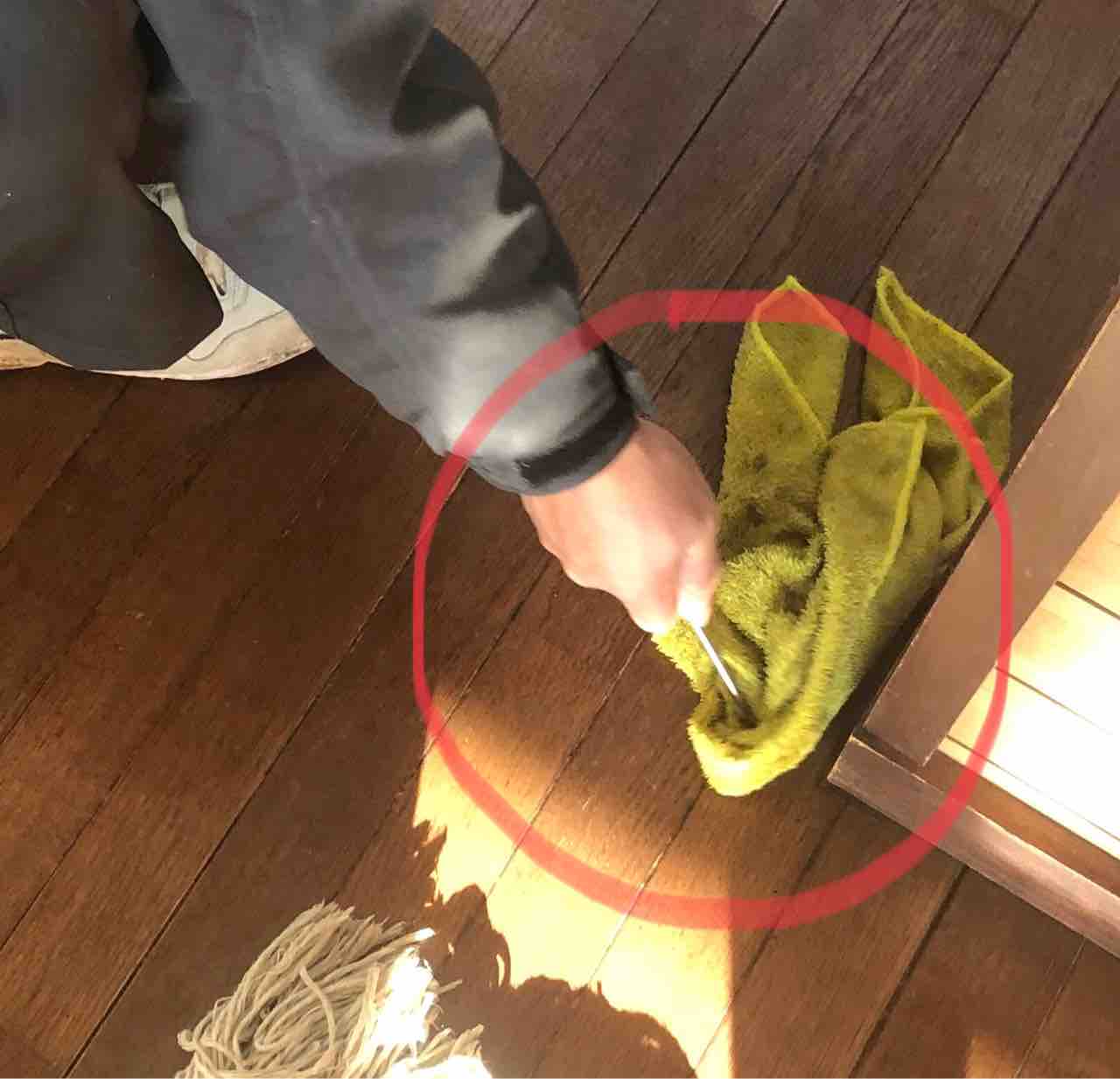 巾木(はばき)やササラの部分もしっかり拭き上げます。