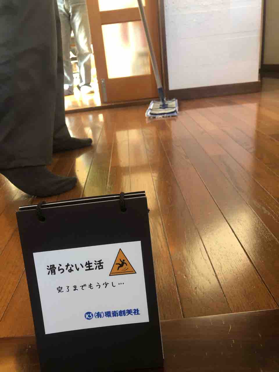今回は二階の共用部分、階段、玄関のフローリングにワックスを2回塗布しましたが、作業時間は1時間40分程度でおいとましてきました。