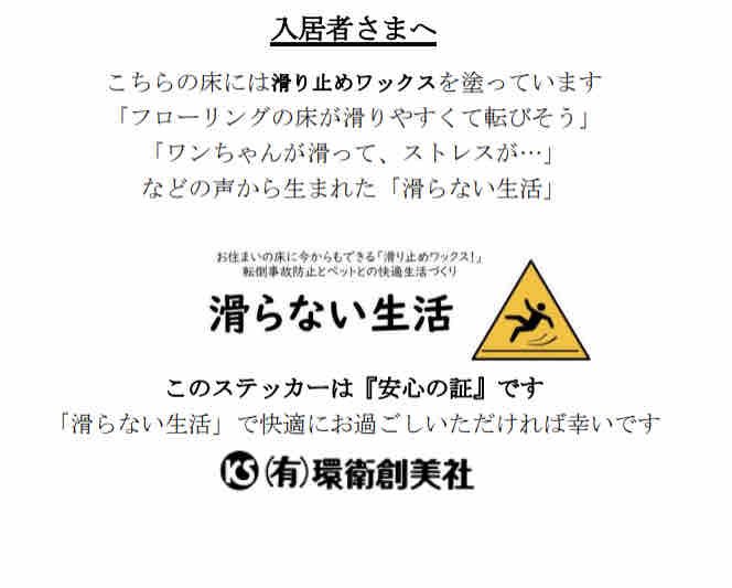 オーナー様のお客様の立場になってのお気遣いに感動して、弊社も「滑らない生活」のお手紙を作り、一緒に置かせていただきました。