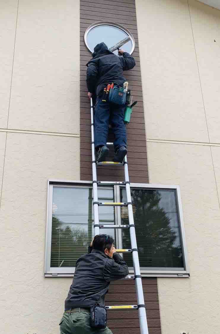 ご家庭の脚立では届かないところも、どうぞご相談ください。もっと長い連ハシゴもあります。